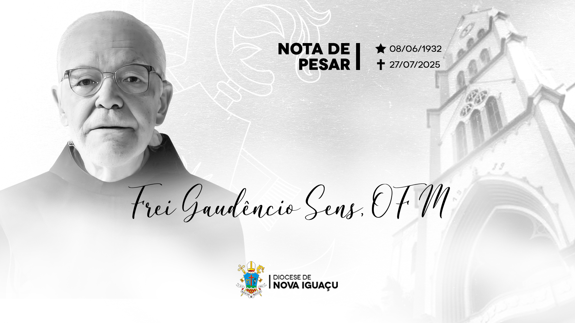 Com profundo pesar, mas na firme esperança da ressurreição, a Diocese de Nova Iguaçu une-se à Província Franciscana da Imaculada Conceição do Brasil para comunicar o falecimento do Revmo. Frei Gaudêncio Sens, OFM, ocorrido na tarde do último domingo, 27 de julho, em Bragança Paulista (SP), aos 93 anos de idade, 69 de vida religiosa e 64 de ministério presbiteral.
