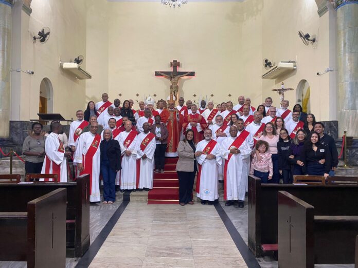 A Diocese de Nova Iguaçu celebrou, na tarde de sábado (9), o Jubileu dos Diáconos Permanentes na Catedral Santo Antônio de Jacutinga. O encontro reuniu diáconos, esposas, filhos e fiéis, num momento marcado pela oração, adoração e Santa Missa.