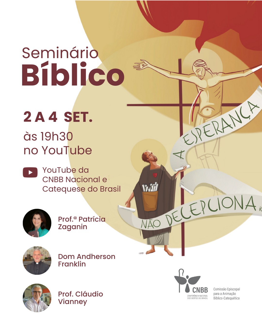 A CNBB convida todos os agentes de pastoral, catequistas, ministros da Palavra, seminaristas, religiosos, religiosas e fiéis em geral a participarem desse momento formativo e espiritual. Mais do que um estudo, o Seminário é um convite à vivência profunda da esperança cristã, fundamento da fé que transforma vidas.