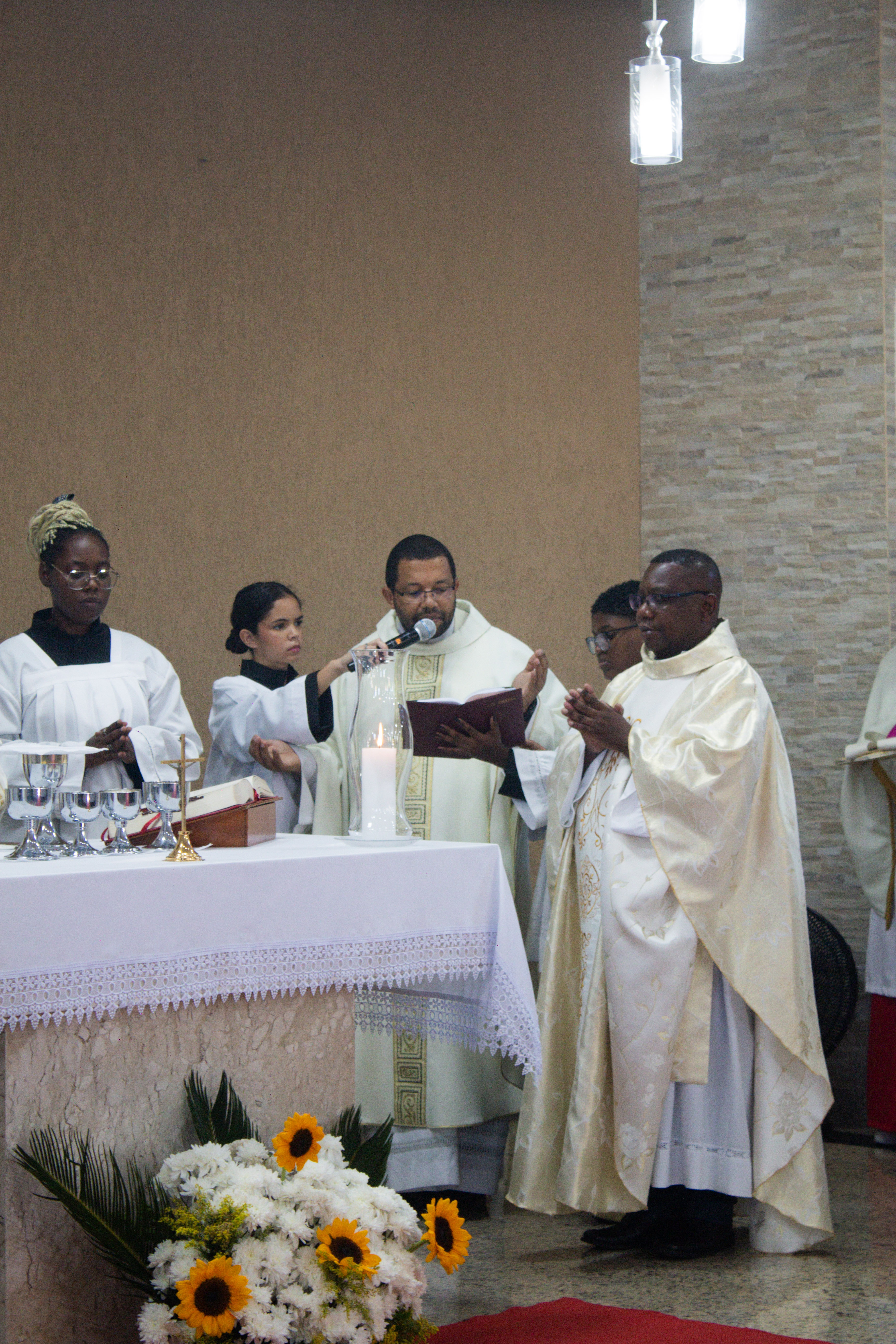 A celebração eucarística foi presidida pelo bispo de Nova Iguaçu, dom Gilson Andrade, e contou com a concelebração do padre Anacleto, superior provincial da Congregação do Imaculado Coração de Maria (CICM) – América Latina. Participaram também o administrador paroquial, padre Richard Mbizi, o vigário episcopal do Vicariato Sul, cônego Romério Augusto, o diácono Wertz, além de outros membros da Congregação do Imaculado Coração de Maria.