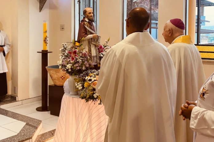 A celebração eucarística foi presidida por Dom Luciano Bergamin, bispo emérito, com a concelebração do padre Richard Borges e a presença do diácono Sérgio. Durante a missa, a comunidade recordou a importância do exemplo de São Francisco de Sales, especialmente por sua espiritualidade marcada pela mansidão, pela escuta atenta e pelo compromisso com uma comunicação pautada na verdade e na caridade.