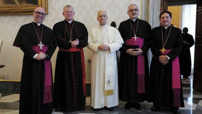 O Papa Leão XIV recebeu, na manhã desta segunda-feira, 26 de janeiro, a presidência da Conferência Nacional dos Bispos do Brasil (CNBB), composta pelo presidente, cardeal Jaime Spengler, O.F.M., arcebispo de Porto Alegre; por dom João Justino de Medeiros Silva, arcebispo de Goiânia e primeiro vice-presidente; por dom Paulo Jáckson Nóbrega de Sousa, arcebispo de Olinda e Recife e segundo vice-presidente; e por dom Ricardo Hoepers, bispo auxiliar de Brasília e secretário-geral.